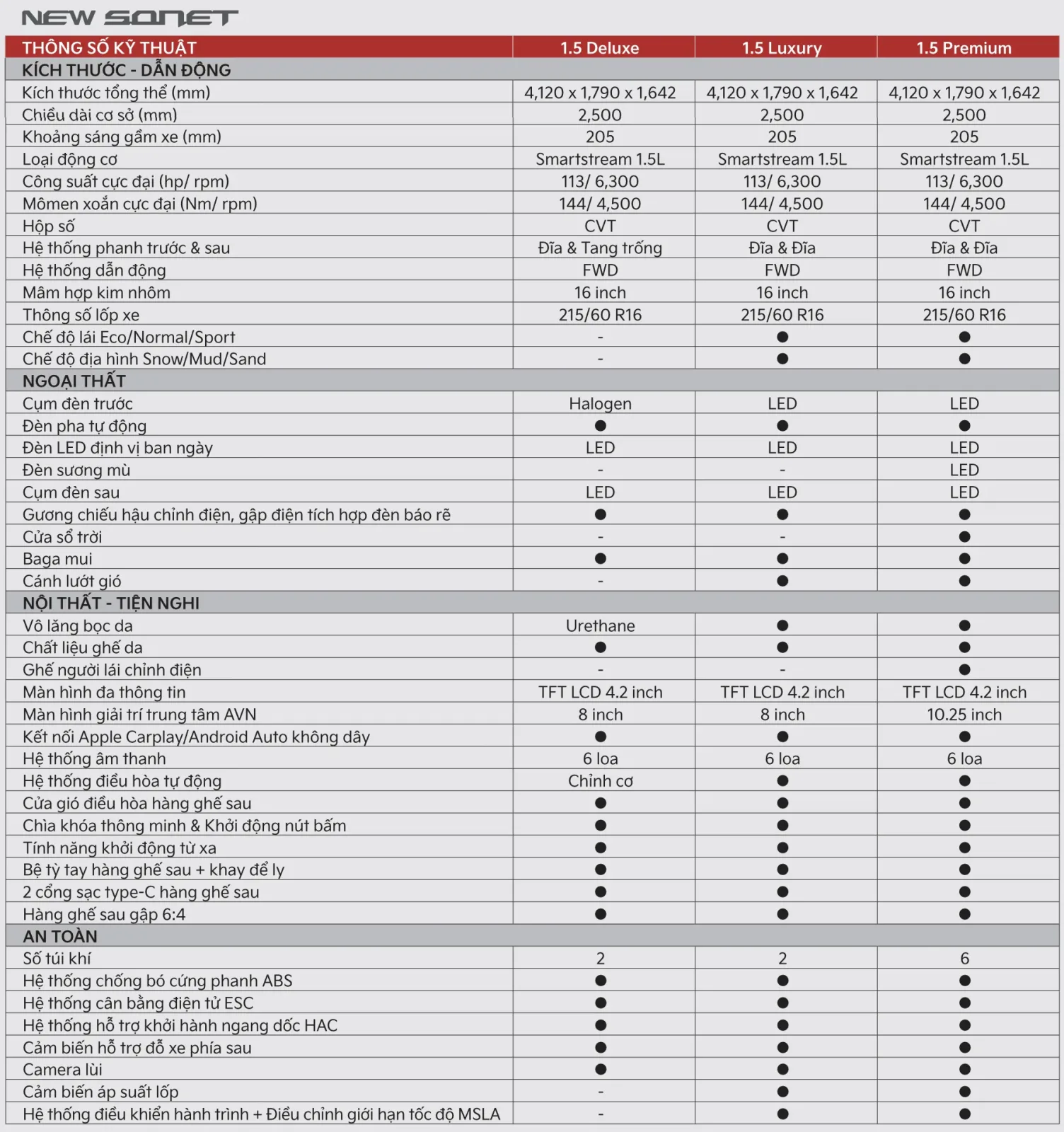 Phiên bản New KIA Sonet 1.5L Deluxe